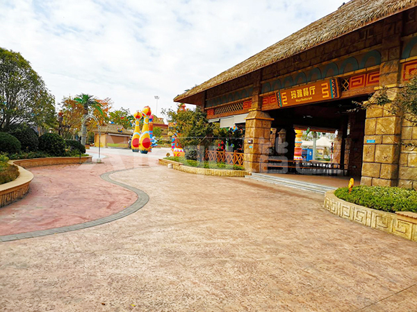 鋪裝類型:壓印藝術(shù)地坪、洗砂面藝術(shù)地坪、圖案彩色密封